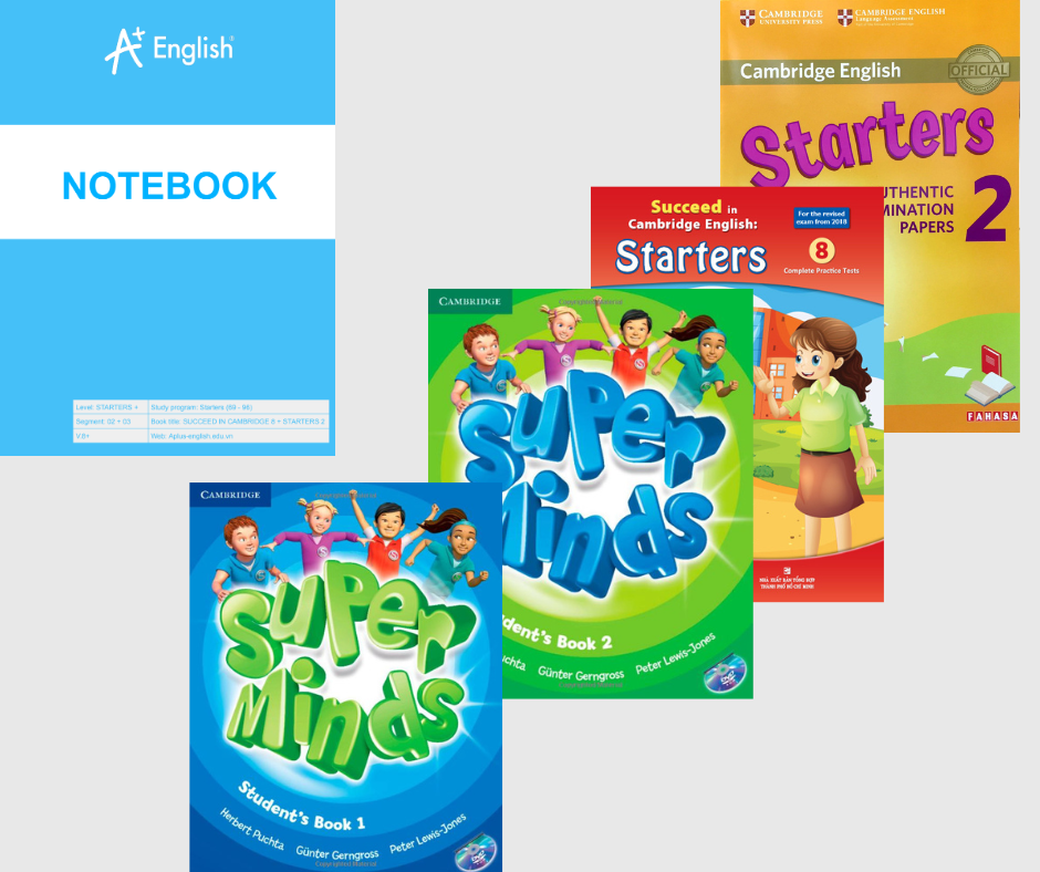 - Tài liệu: Super minds 1, 2 + Đề Starters Cambridge