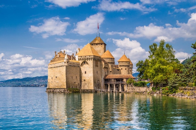 Chillon – lâu đài đẹp nhất Thụy Sĩ cũng là một nơi được cho là gắn liền với chuyện tình yêu của hoàng tử và công chúa. Nằm bên hồ Léman thuộc thành phố Montreux. Chillon đến nay đã hơn 850 tuổi. Trong lâu đài này có đến 100 tòa nhà độc lập gắn kết với nhau tạo thành một khu quần thể rộng lớn. Từng là nơi ở của Bá tước Savoy giàu có. Mỗi năm, Chillon thu hút đến hơn 350.000 du khách tham quan.