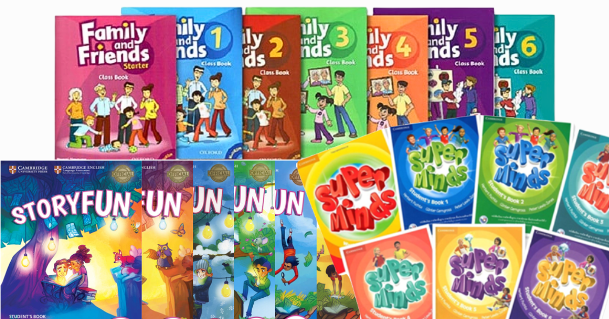 Bộ sách có 10 quyển: Family and Friends Starters;Family and Friends 1,2,3,4,5,6; và Grammar Friends 1,2,3,4,5